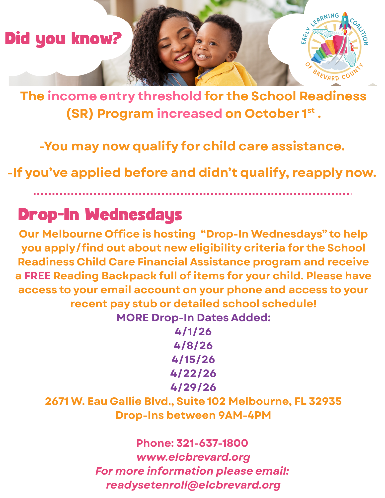 Childcare Resource and Referral is available to assist families seeking quality and affordable child care options and local community resources. If you are interested in this free resource, please contact our CCR&R Parent Line 321-637-1800 ext. 8573.